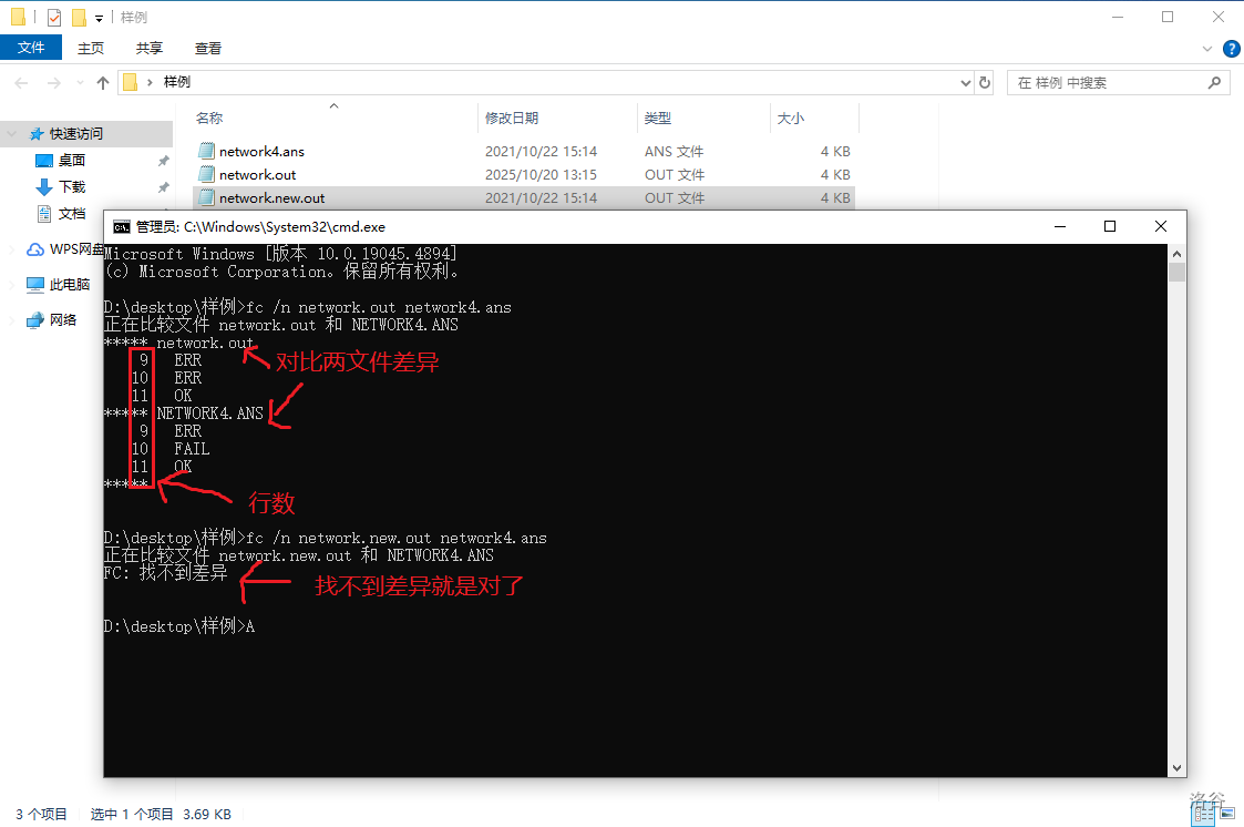 fc /n [想比较的第一个文件的名字] [想比较的第二个文件的名字]