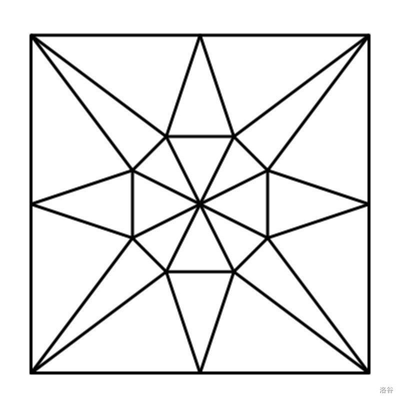 为了避免精度问题,我们额外限制所有三角形顶点的坐标都必须是整数。可以证明,对于本题所有可能的输入,如果正方形可以被分割成 个锐角三角形,则一定存在一个满足所有限制的分割。