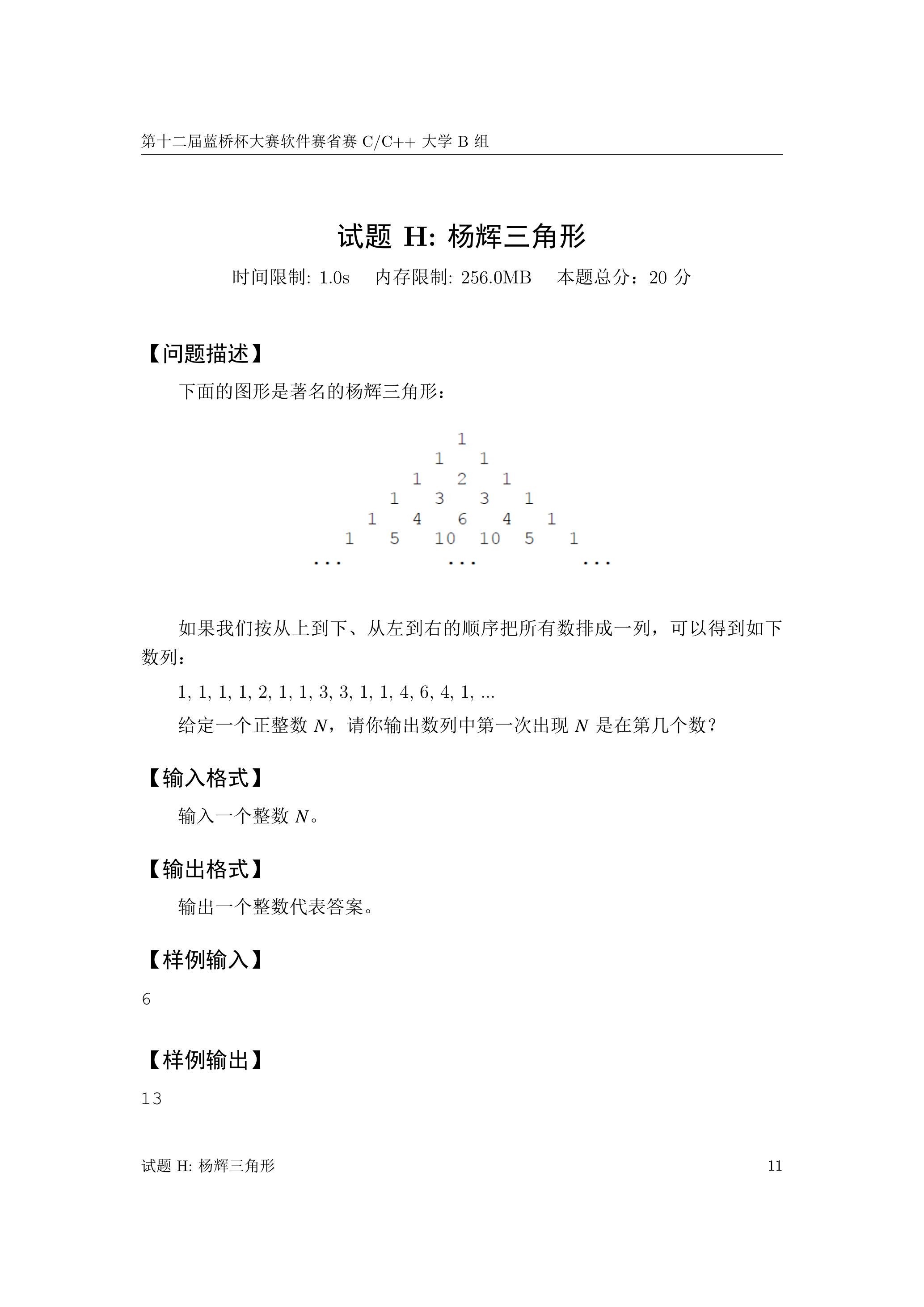 [蓝桥杯 2021 省 B] 杨辉三角形